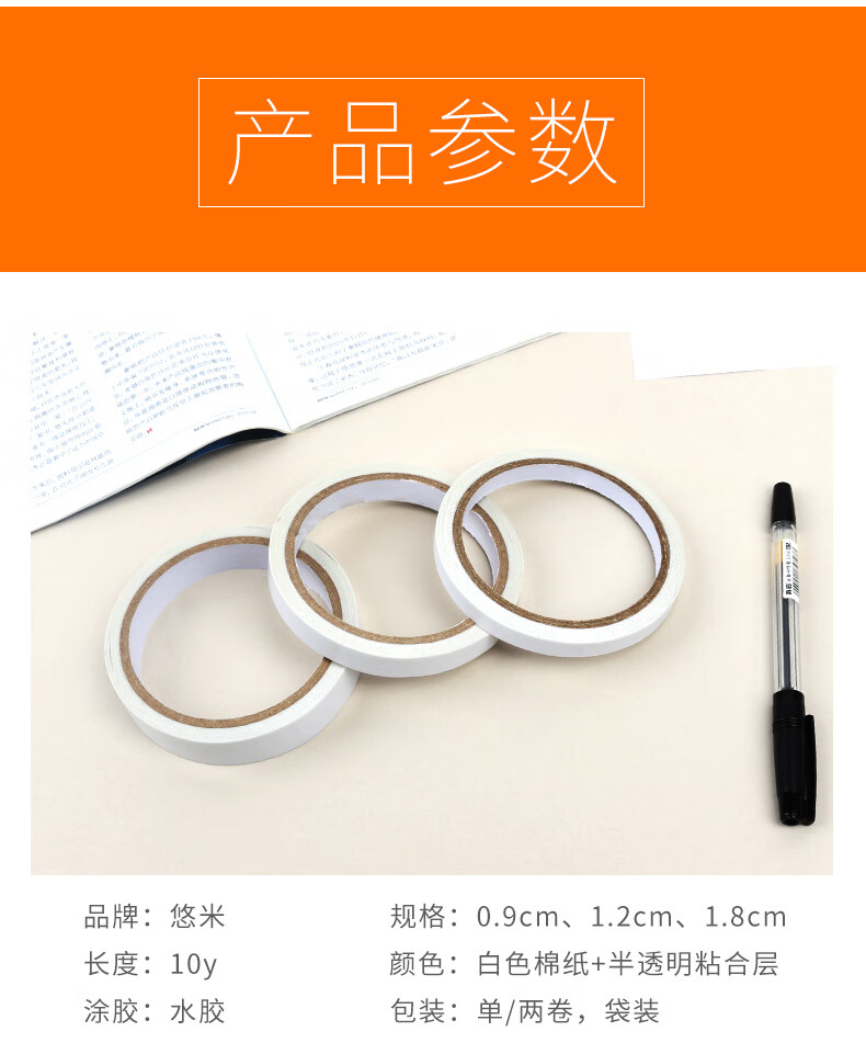 悠米B05204W綿紙雙面膠1.8cm*10y