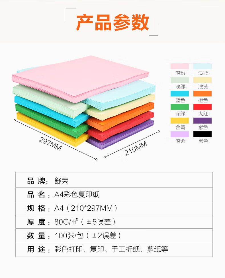 舒榮(SHURONG)(黑色)彩色多功能復(fù)印紙 100張/包