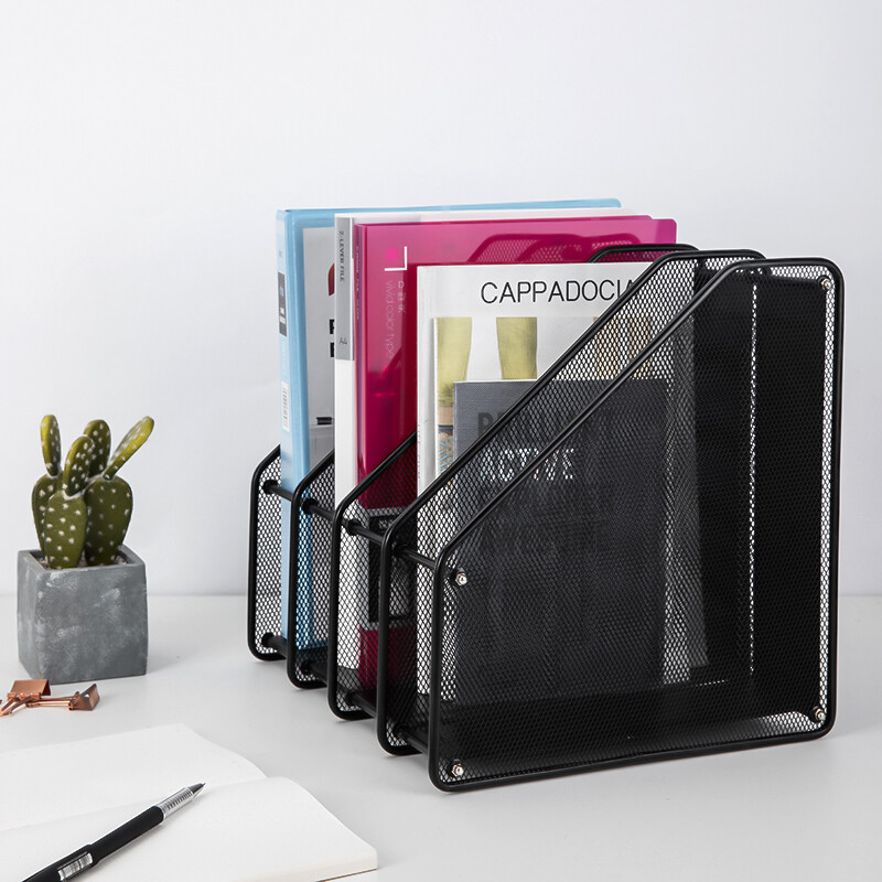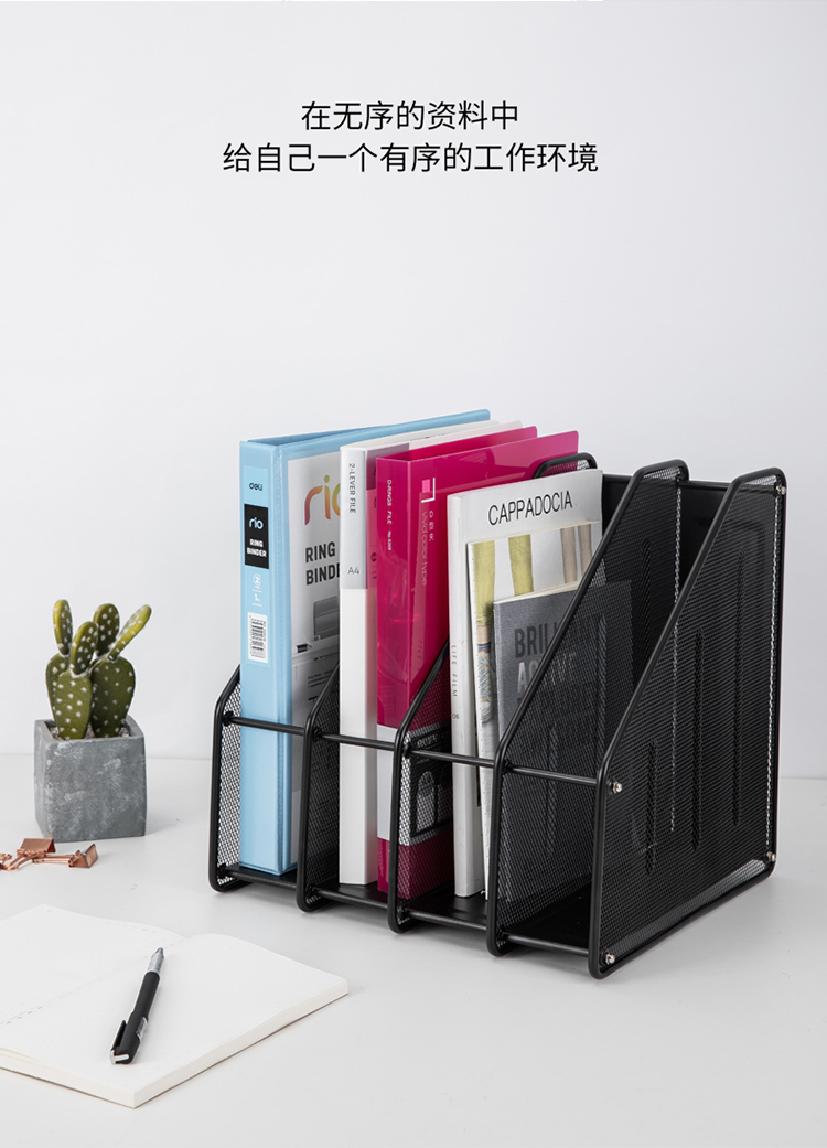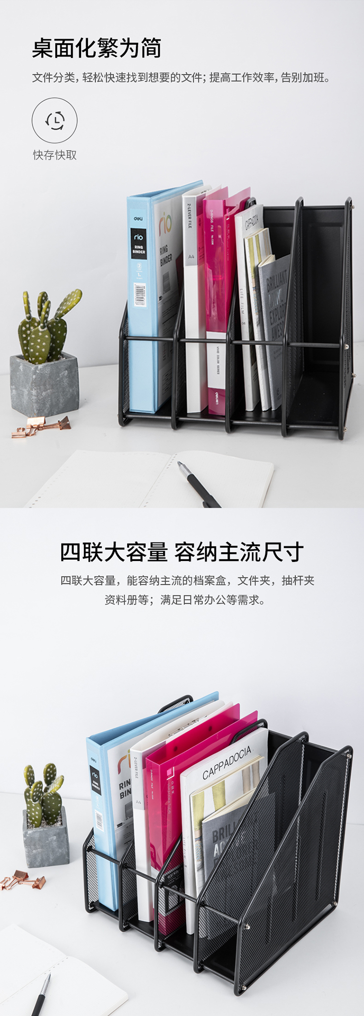 得力(deli)四聯(lián)鏤空金屬網(wǎng)材雜文件框 A4文件座文件框黑色78994