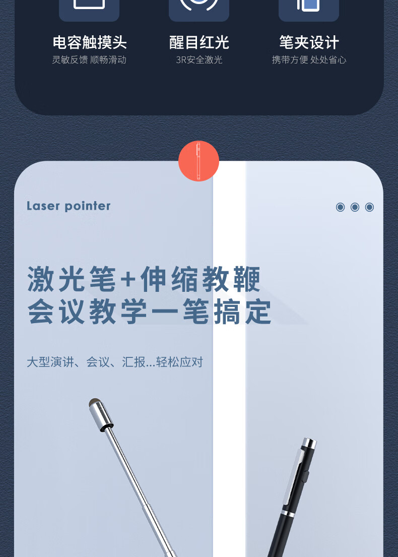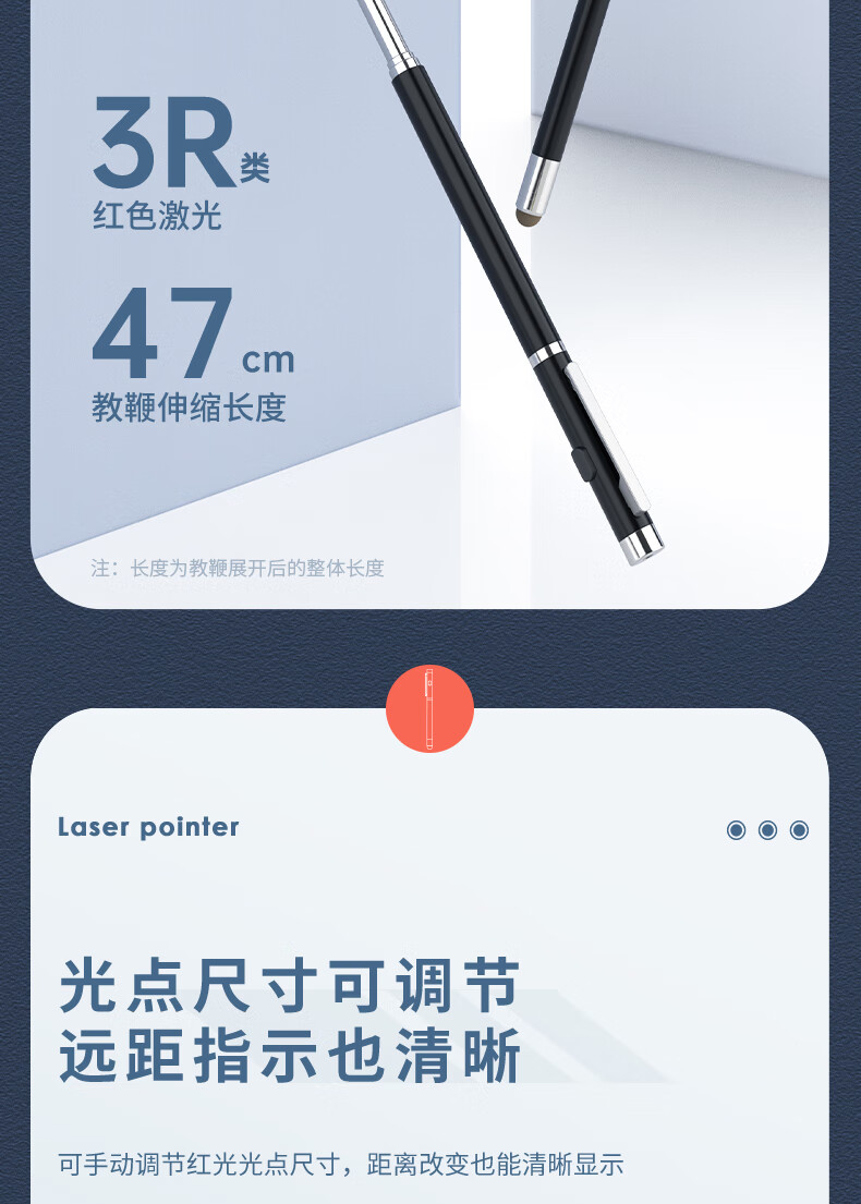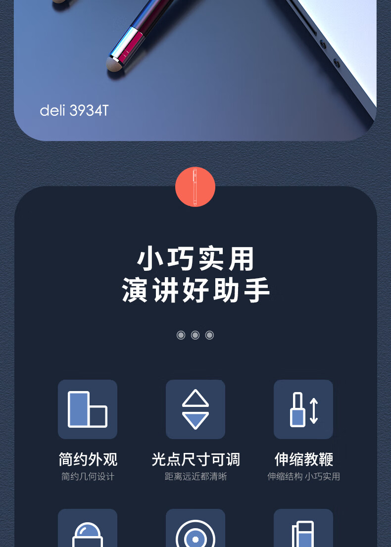 得力(deli) 激光筆 電容觸摸頭 多媒體講課筆可伸縮3934T黑