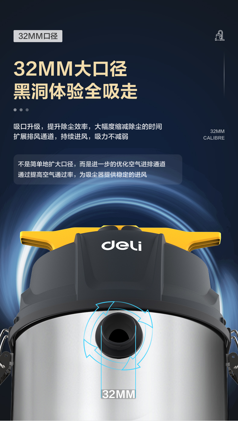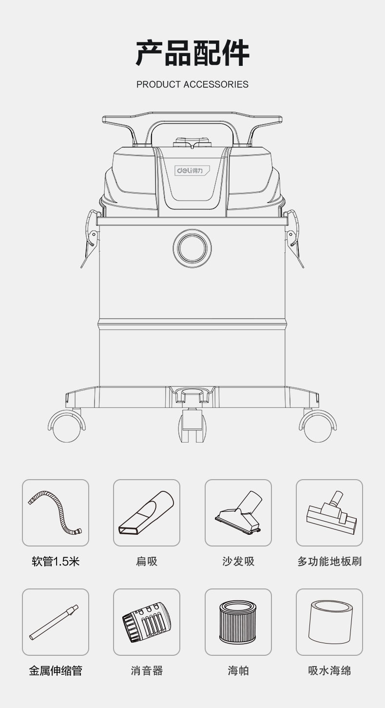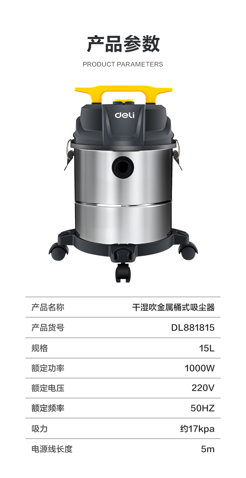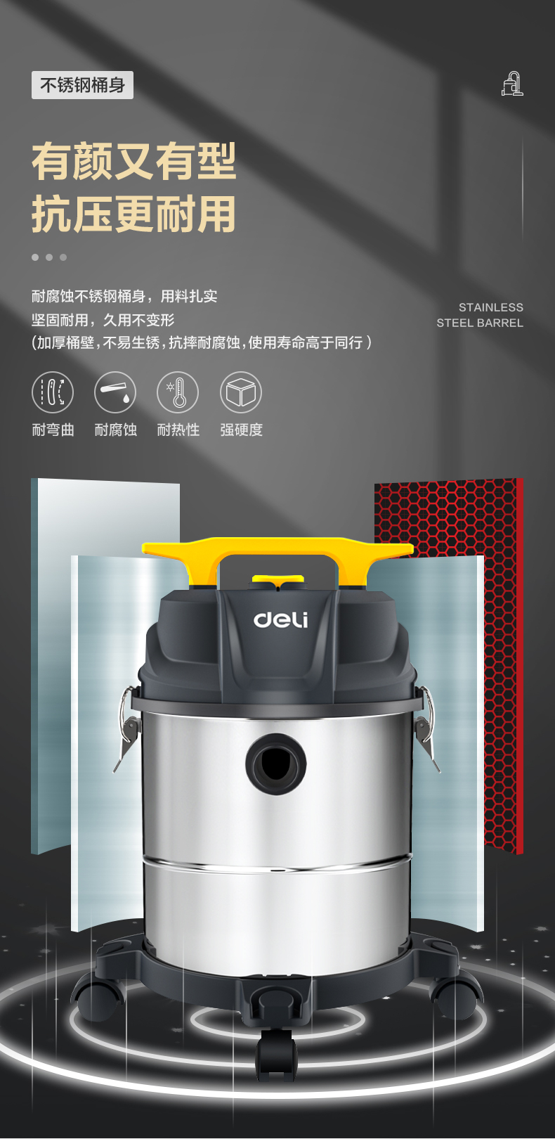 得力 吸塵器3C認證 1000w大功率 1000w桶式吸塵器15L