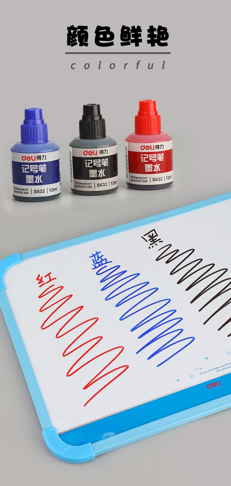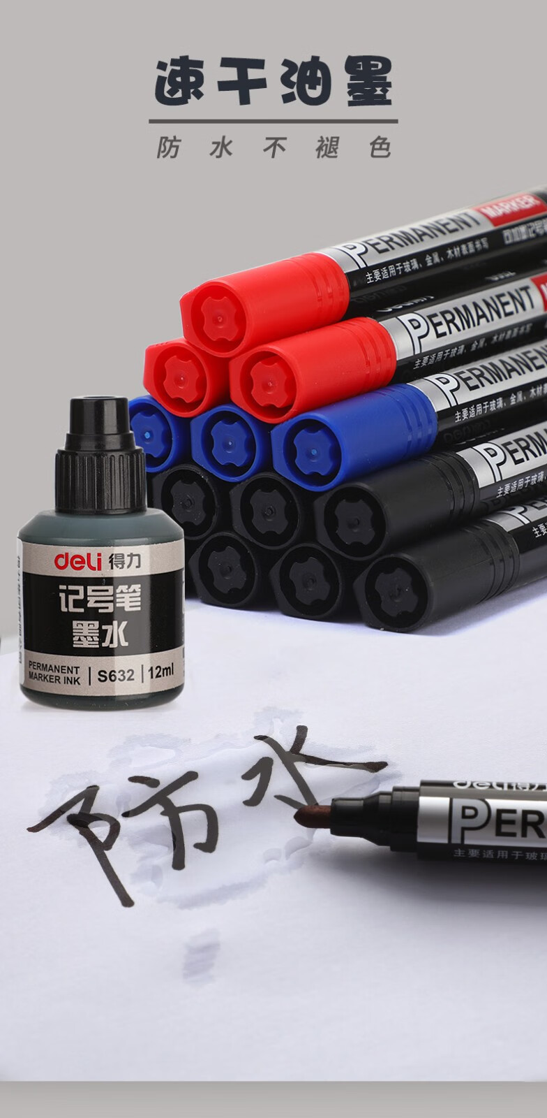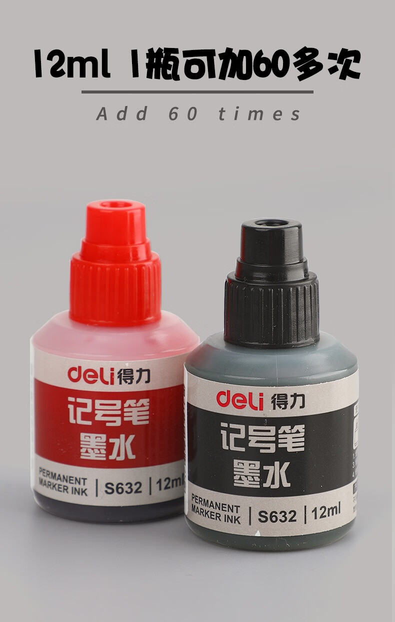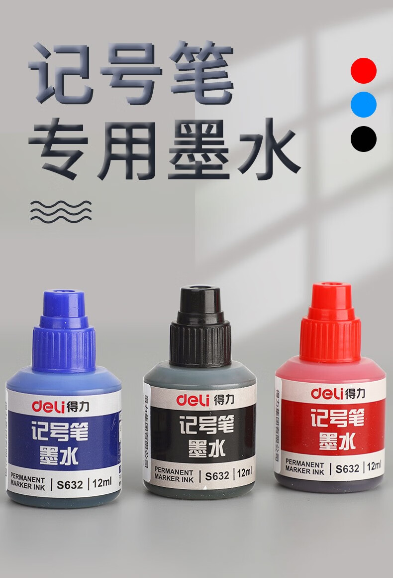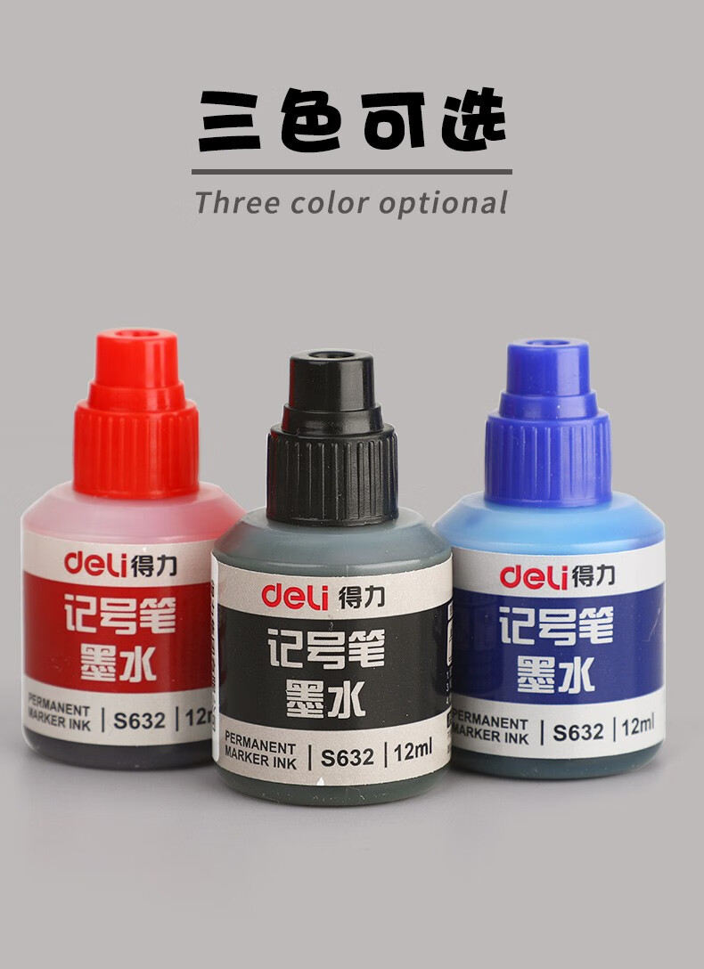 得力(deli)記號(hào)筆墨水補(bǔ)充液油性防水不掉色 紅色S632