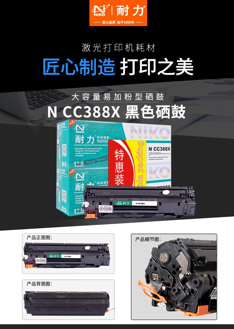 耐力(NIKO)N CC388X大容量易加粉黑色硒鼓(適用惠普 LaserJet 1007/1008/M1136/1213nf))