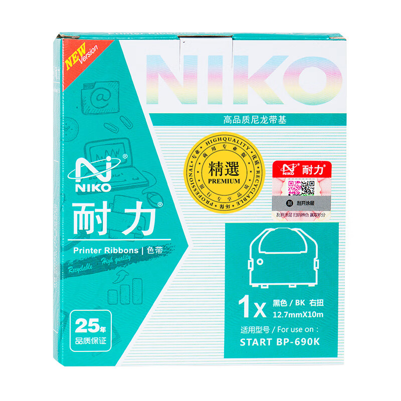 耐力(NIKO)精選商用專業(yè)版N BP690K 黑色色帶 (適用實達BP690KII/BP690K+/博施BS330KF/中胤虹遠CPD-KP770)