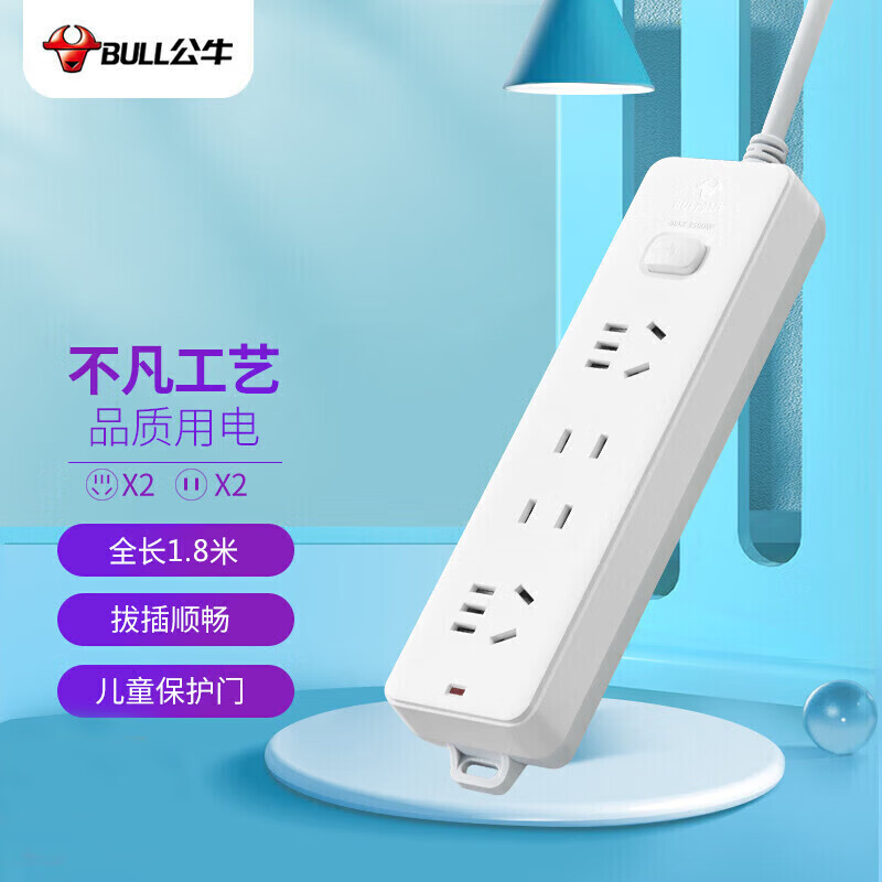 公牛 GN-211 10A 250V-0.75mm2 1.8m導(dǎo)線 拖線板