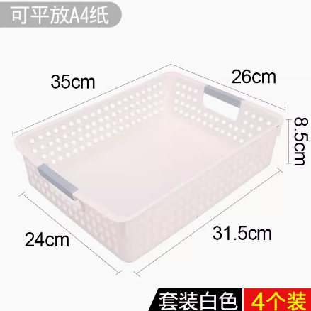 塑料籃筐A4收納框文件籃 (白色/4個(gè)裝)