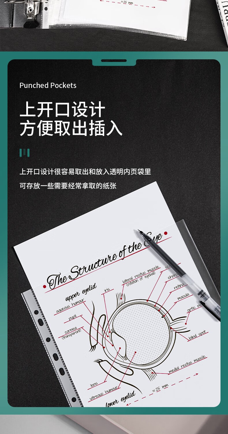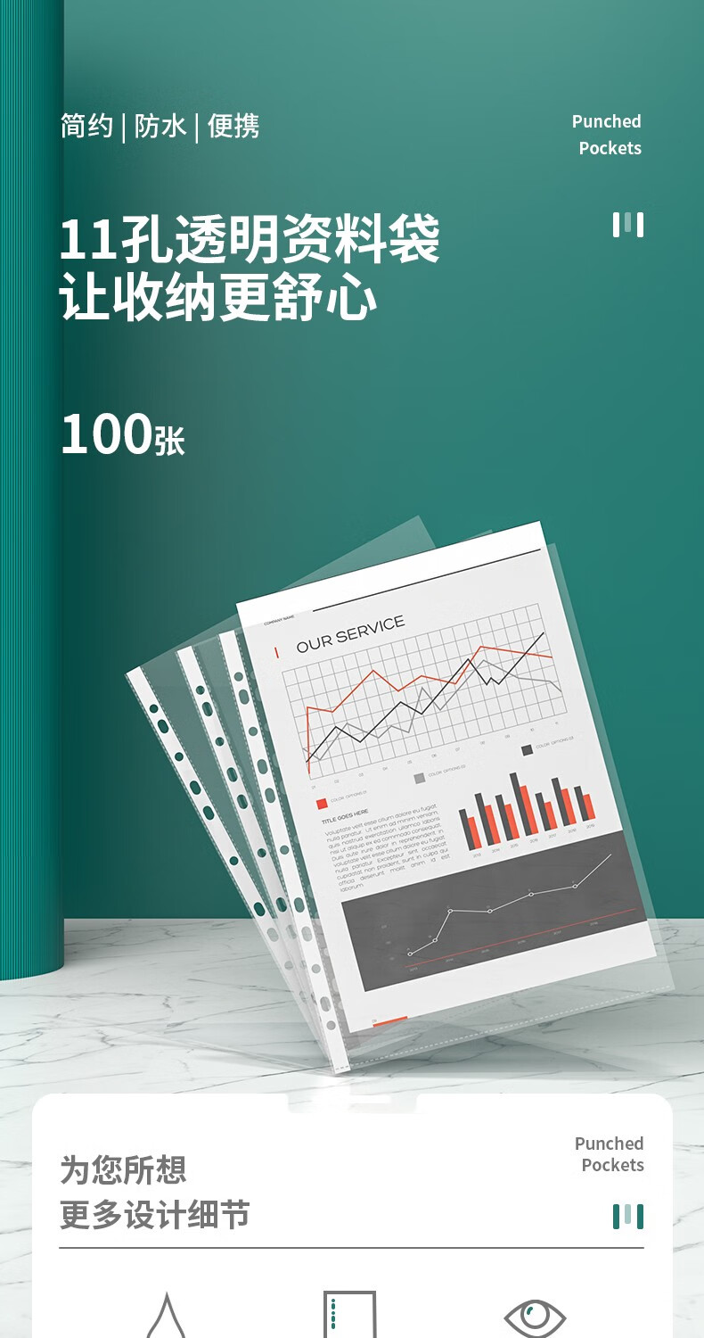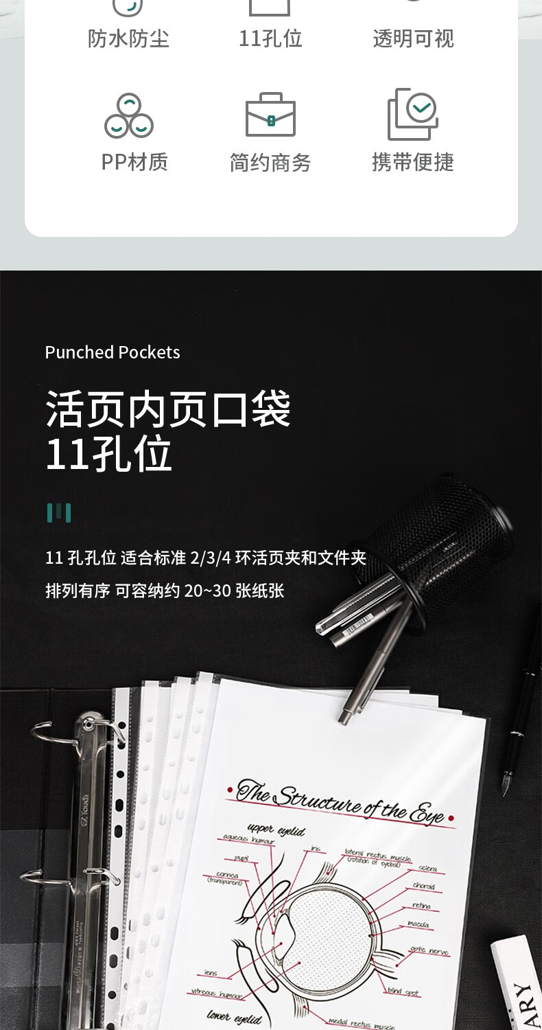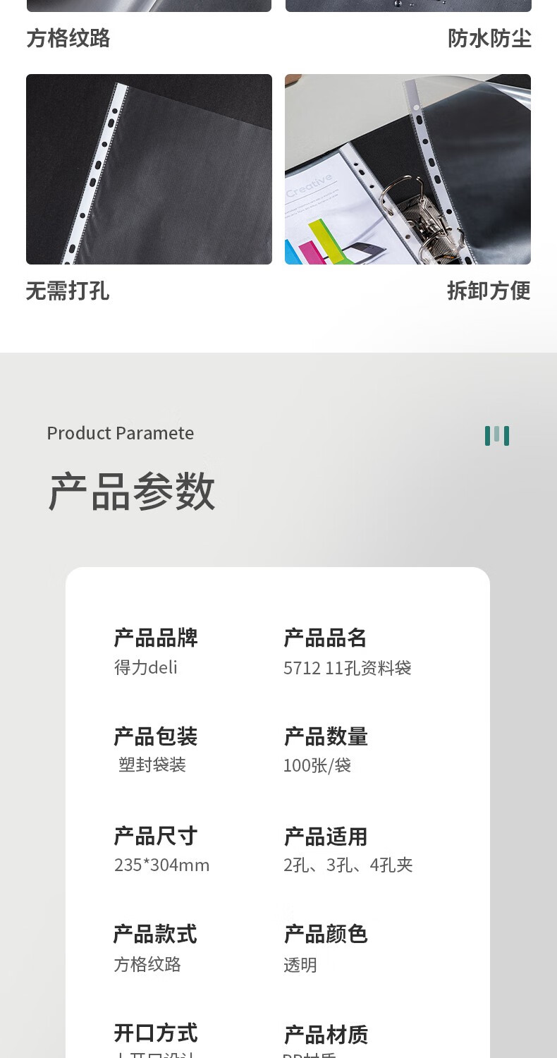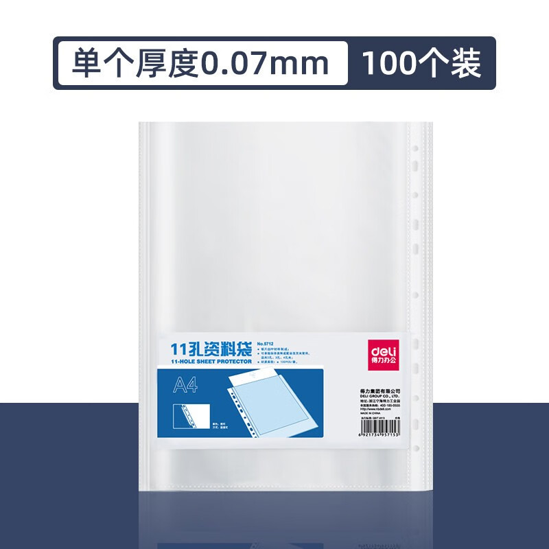 得力11孔資料文件袋 5712-100只裝-透明內(nèi)袋