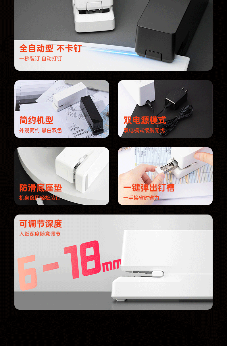 得力電動訂書機TA750 適配24/6或26/6訂書釘白色