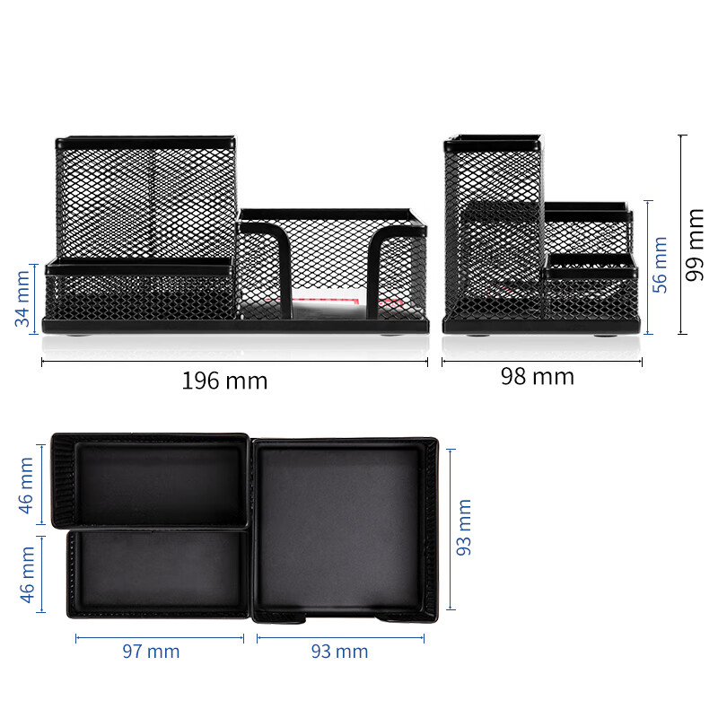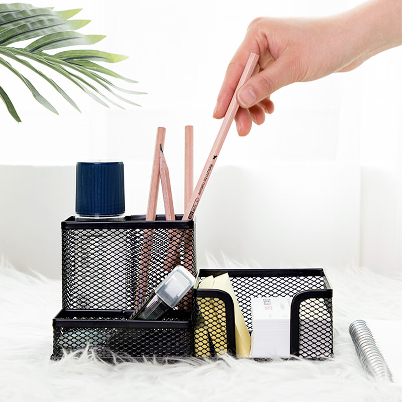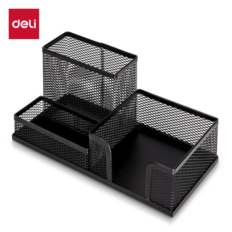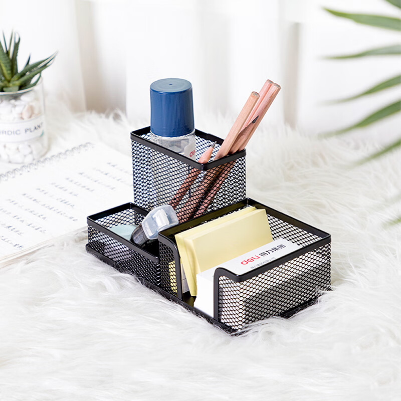 得力(deli)金屬網(wǎng)紋筆筒 多功能三格桌面收納 辦公用品 黑色9175
