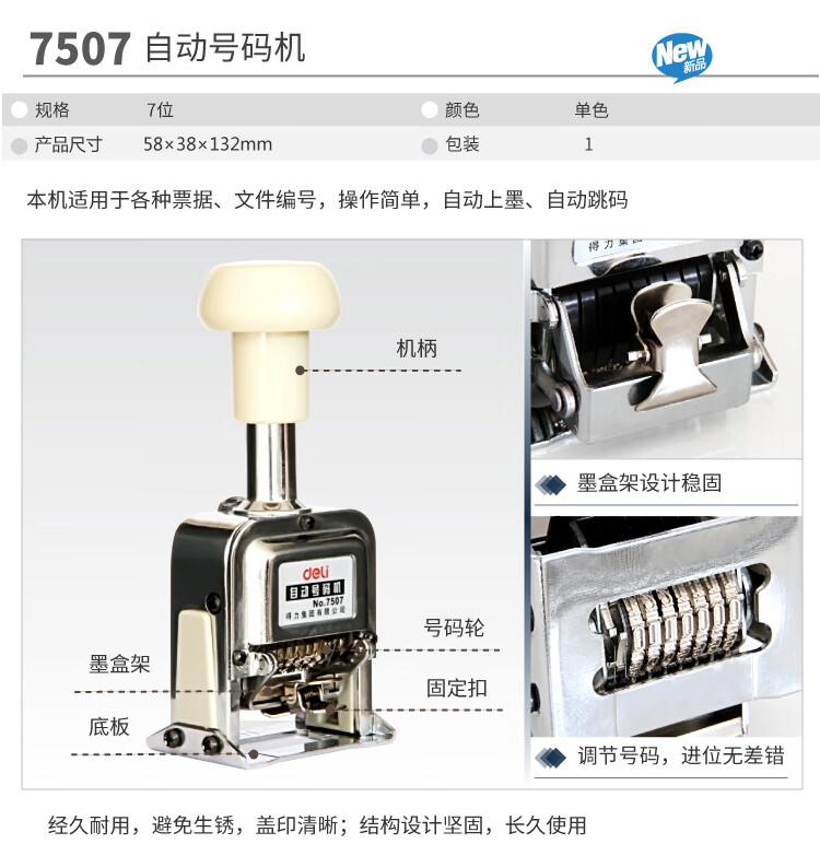 得力7位自動(dòng)號(hào)碼機(jī) 7507