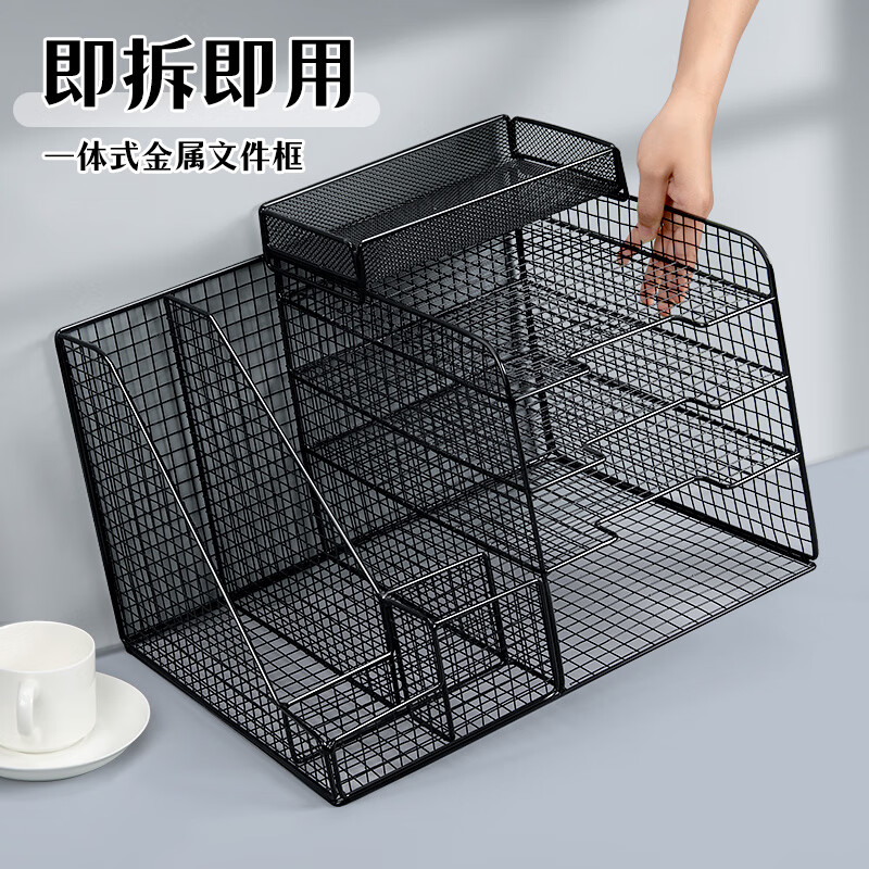 收納筐雜志架雅典黑-置物架在左-一體式加厚