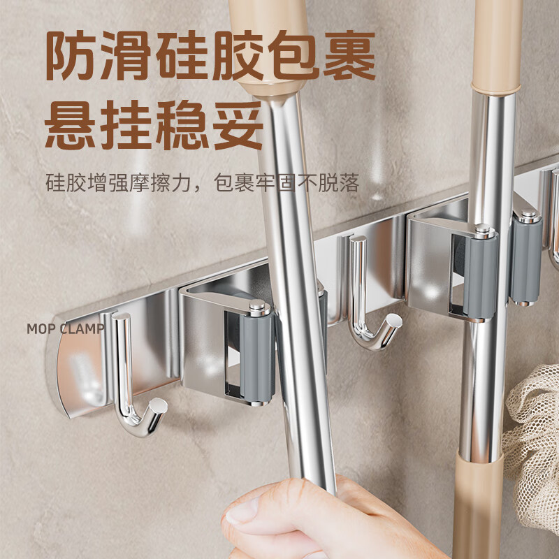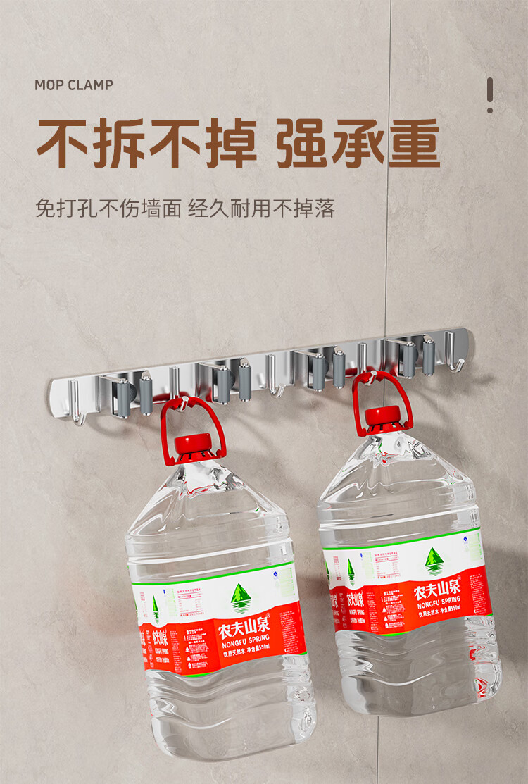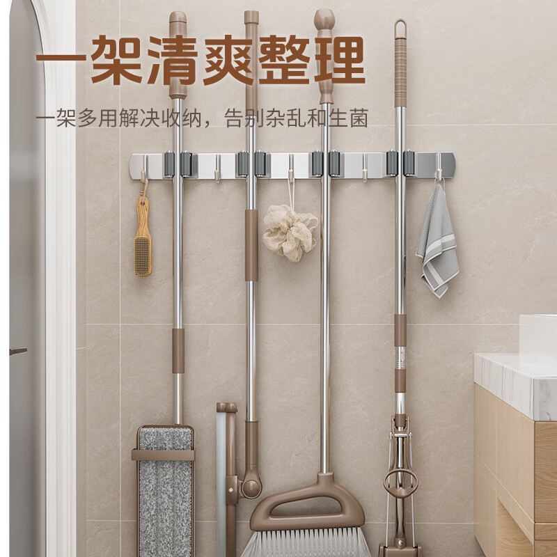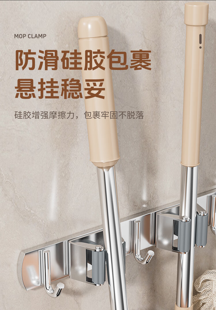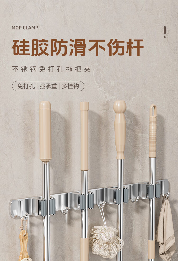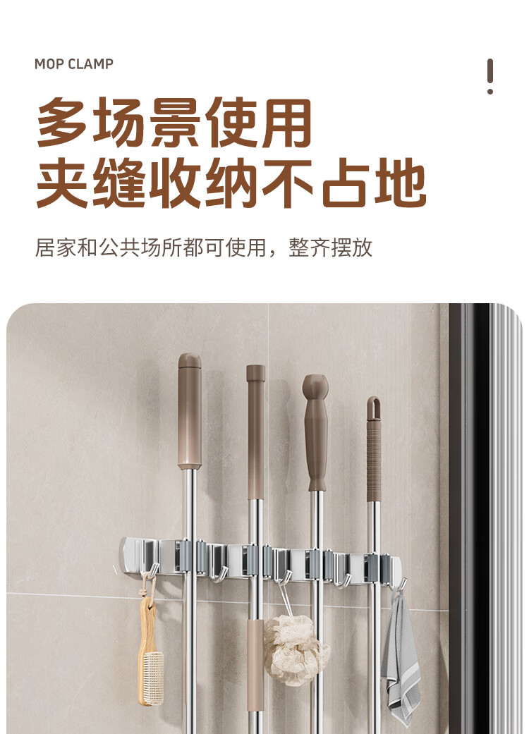 拖把掛鉤4夾5鉤不銹鋼拖把架免打孔