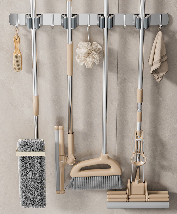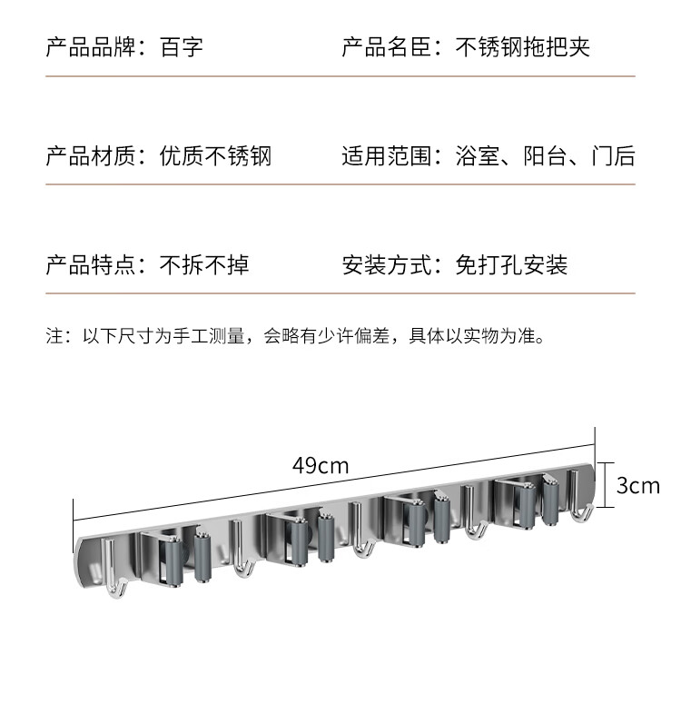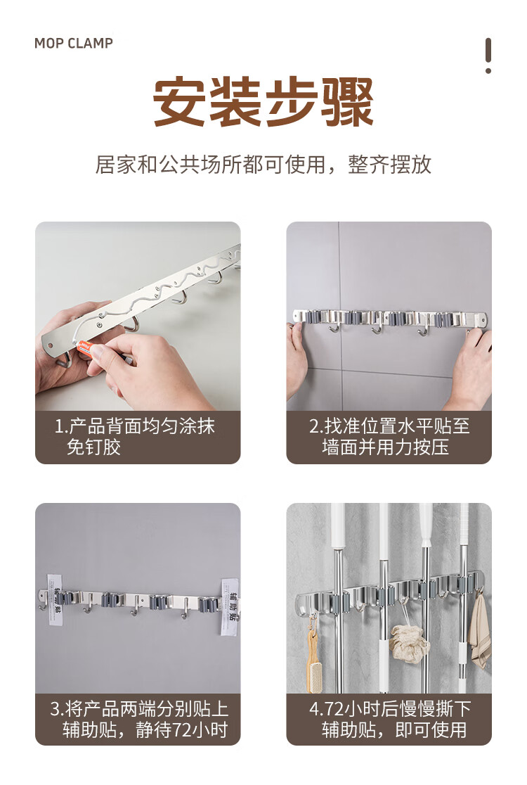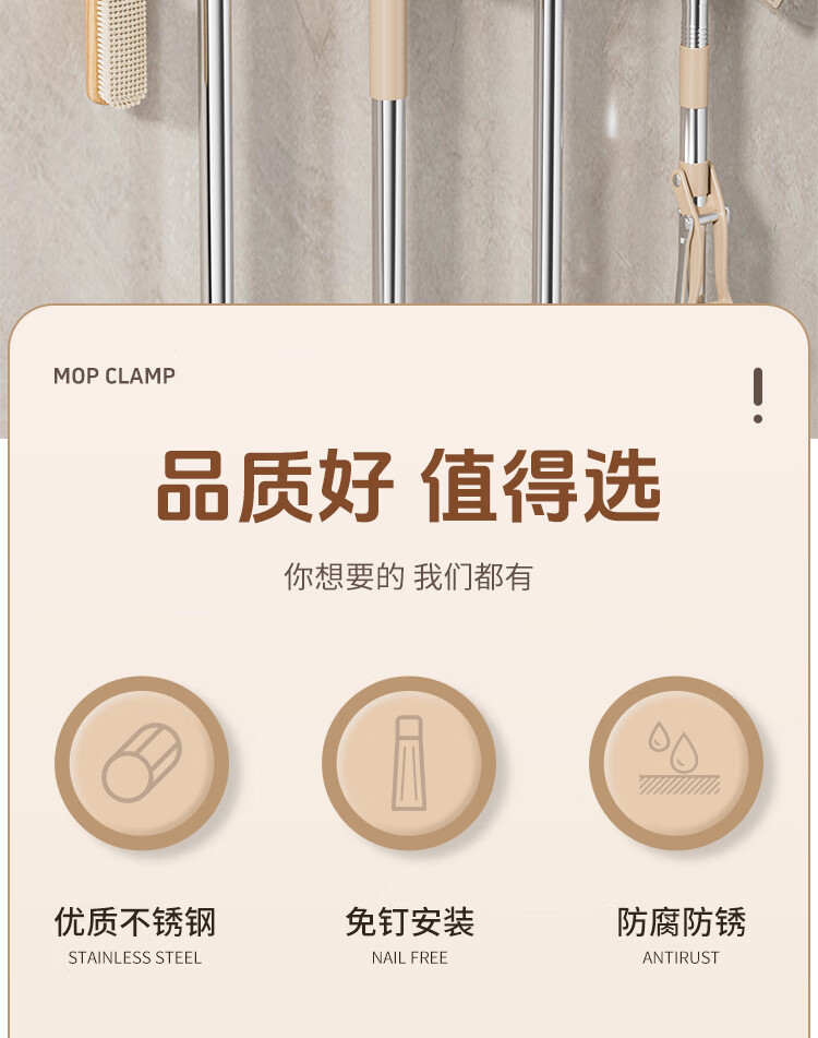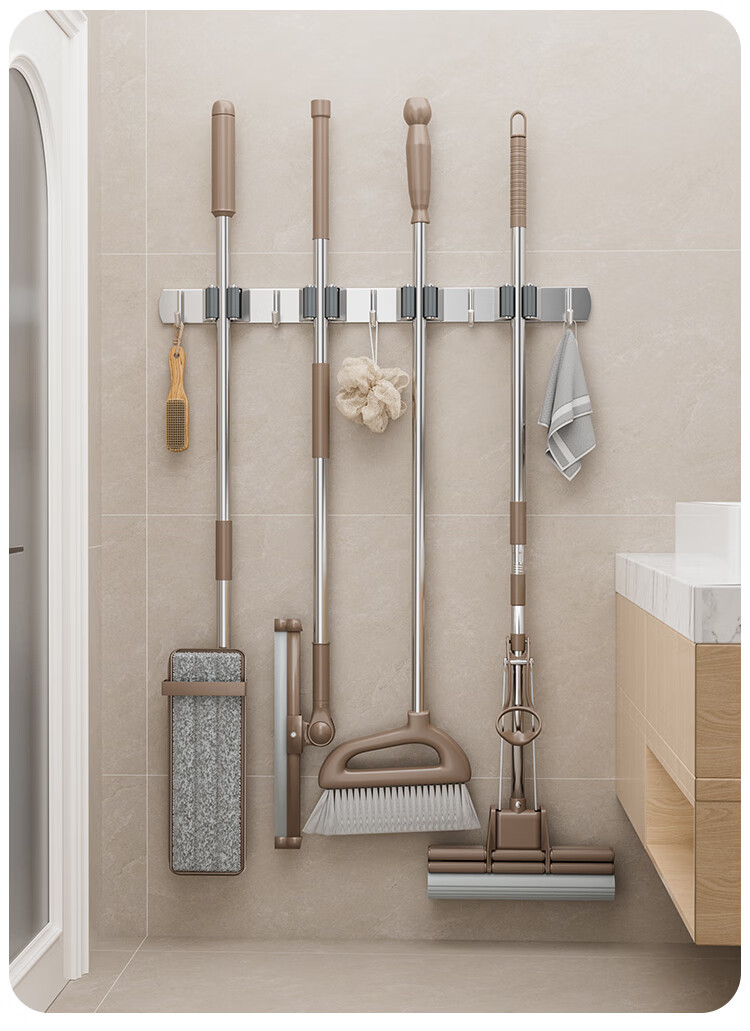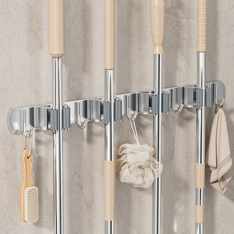 拖把掛鉤4夾5鉤不銹鋼拖把架免打孔