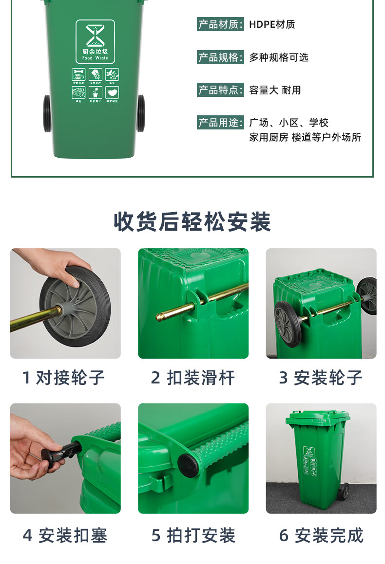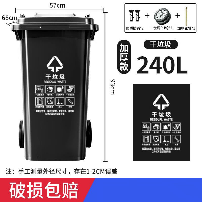 垃圾桶大號 240L加厚掛車黑色干垃圾