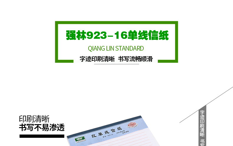 產(chǎn)品名稱 強林 923-16紅單線信紙-16K(3本裝) 貨號 QL006644