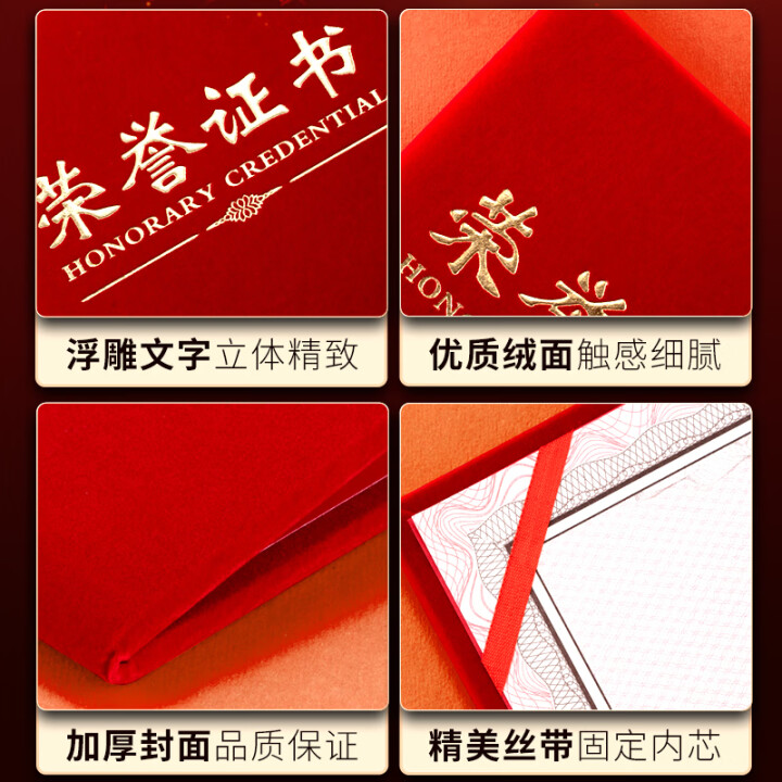 紅色絨面榮譽證書套12K