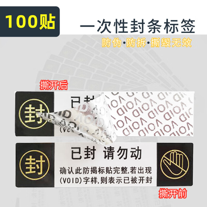 封口標簽貼撕毀無效 已封請勿動100貼【8*2cm】