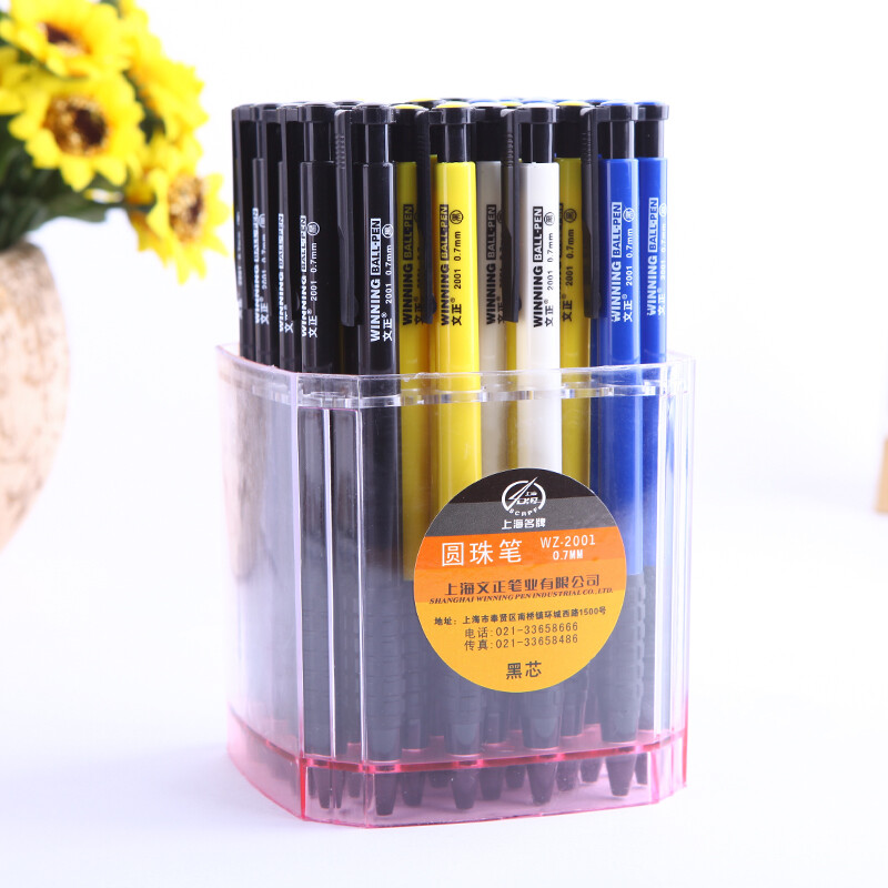 文正圓珠筆黑色筆芯0.7mm圓珠筆子彈頭批發(fā)教師學(xué)生辦公用按動(dòng)油筆 2001-黑芯4色桿40支筒裝