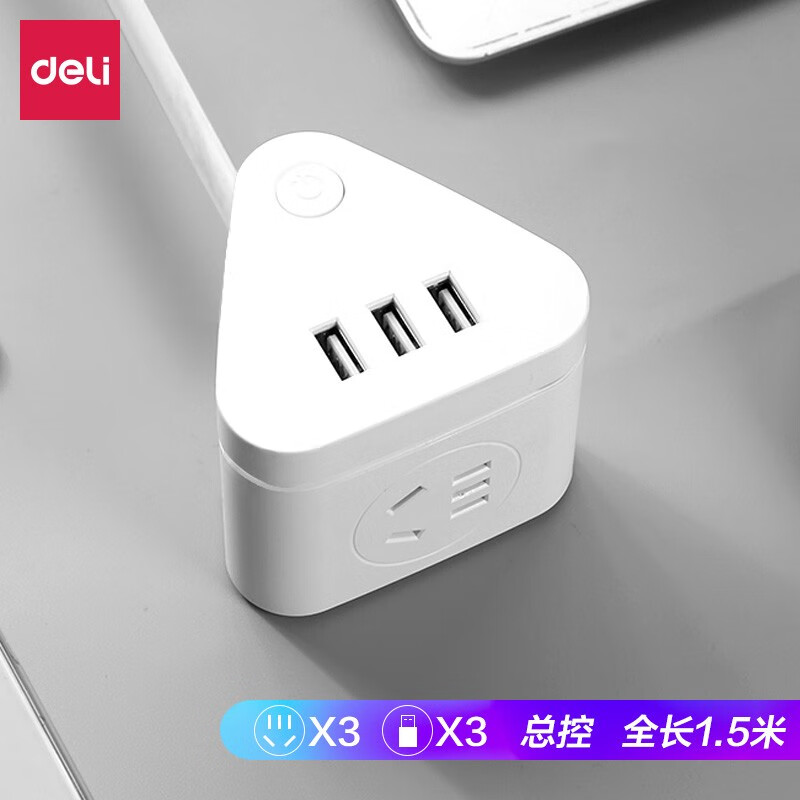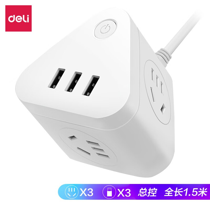 得力 魔方3轉(zhuǎn)帶USB接線板 插座(18321)【1.5m線】