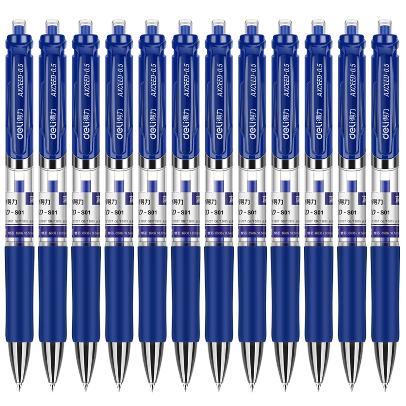 得力S01經(jīng)典按動(dòng)中性筆0.5mm彈簧頭12支裝/盒 藍(lán)色 12