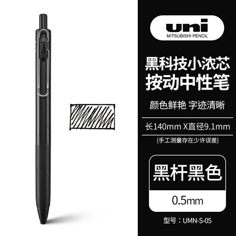三菱中性筆uni-ball簽字筆UMN-S-05+筆芯3支 黑色0.5mm