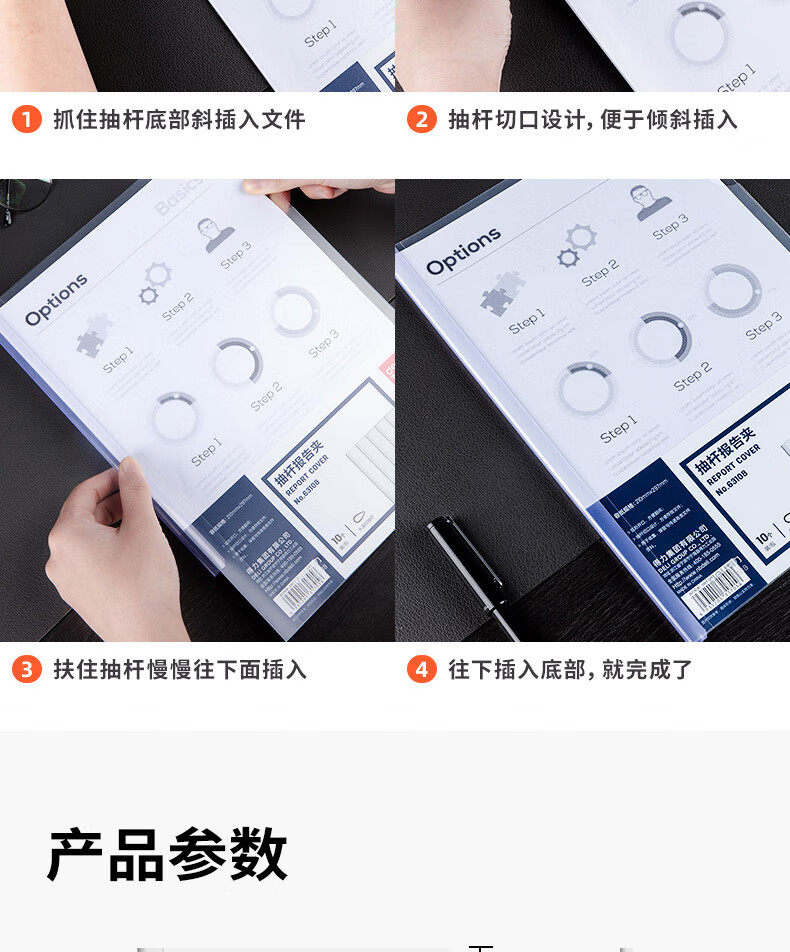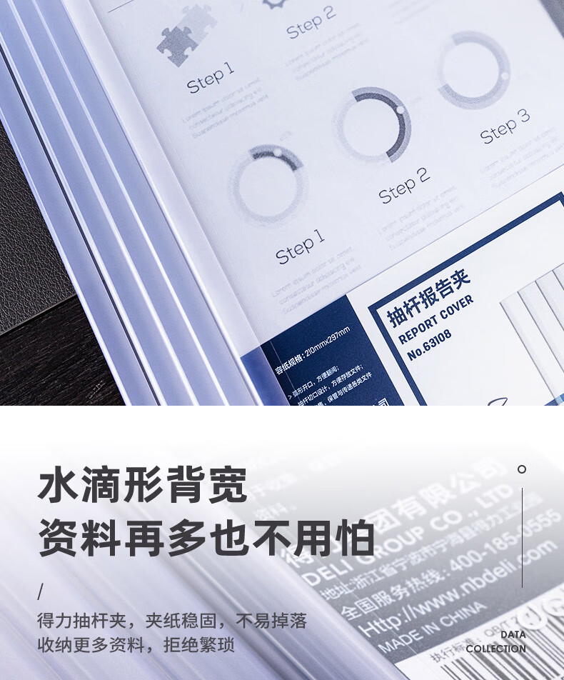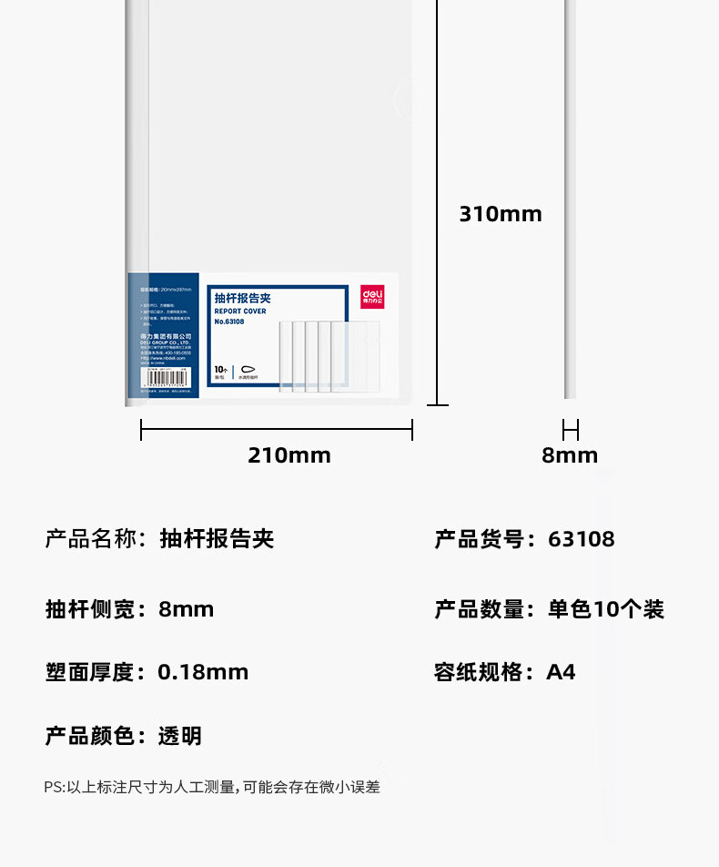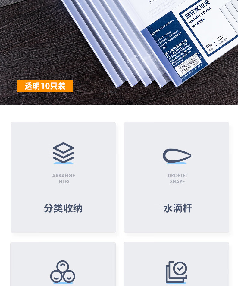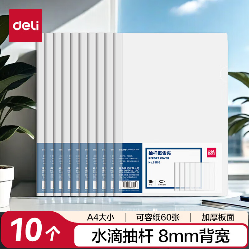 得力63108-抽桿報(bào)告夾(透明)(10個(gè)/包)(包)