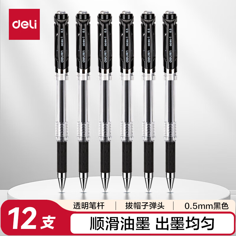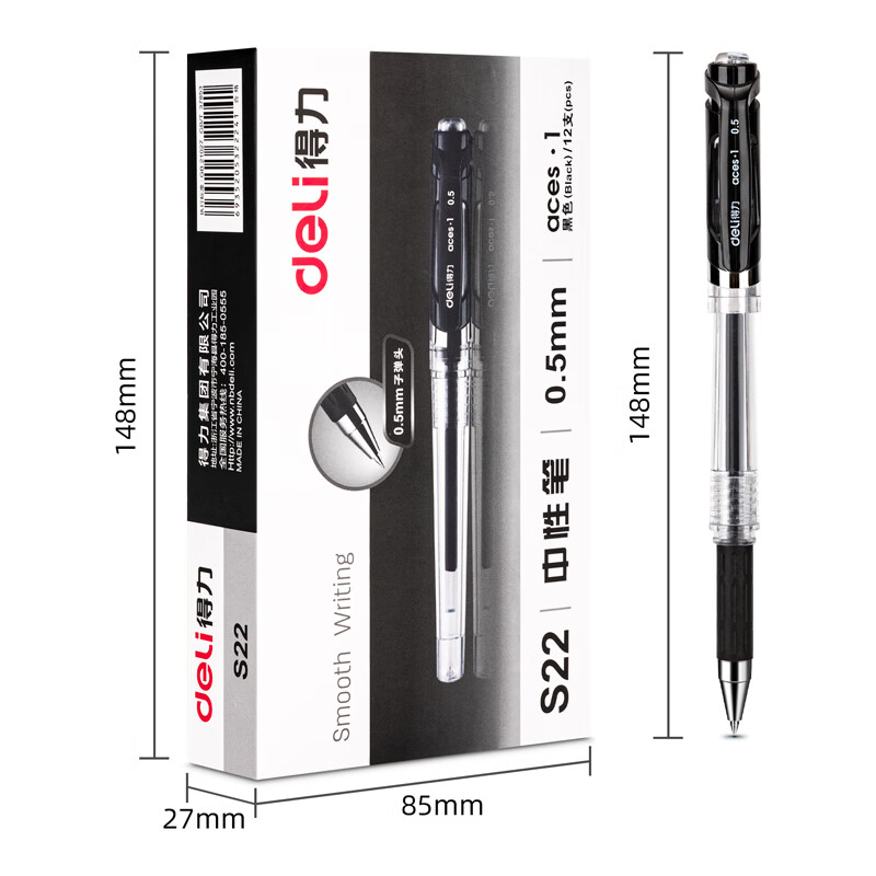 得力S22簽字筆中性筆水筆0.5mm12支/盒(單位:盒)黑色