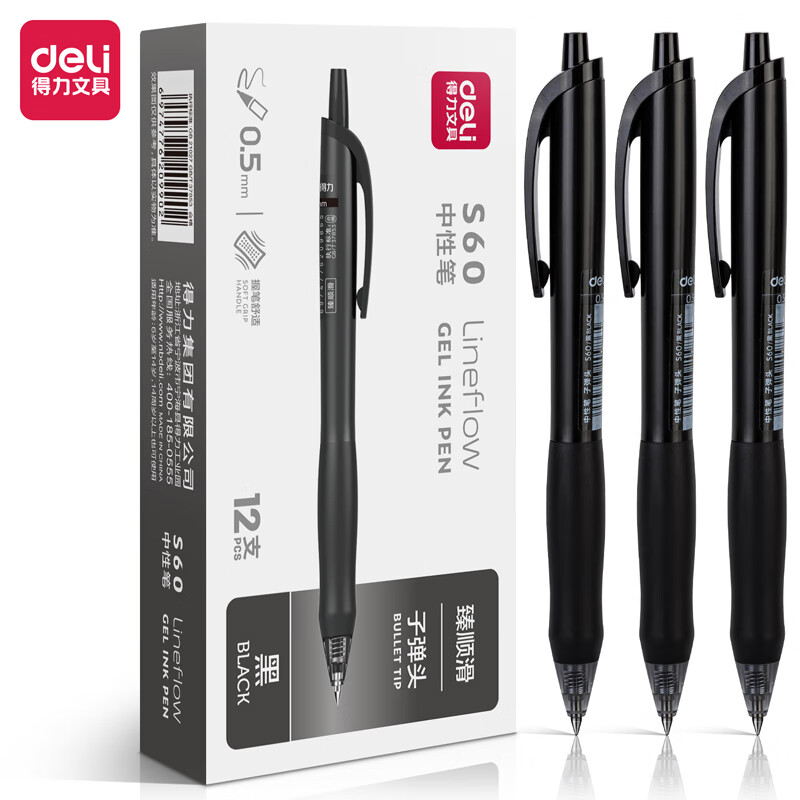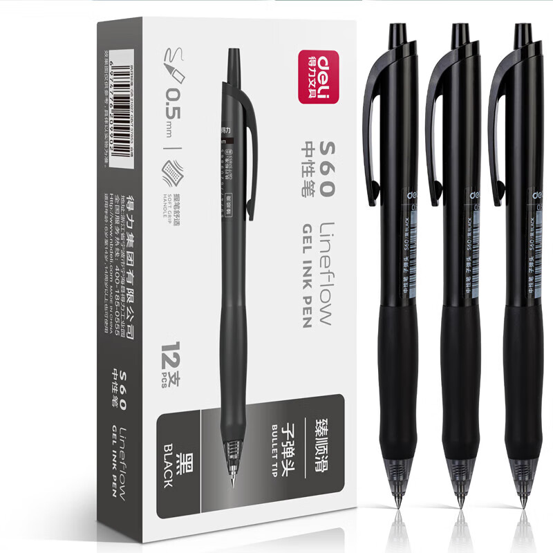 得力S60臻順滑辦公中性筆0.5mm子彈頭(支)黑