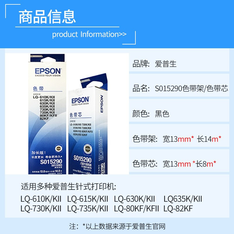 愛普生(EPSON) 針式打印機LQ-610K/615K/630K/80KF/適用SO15290色帶