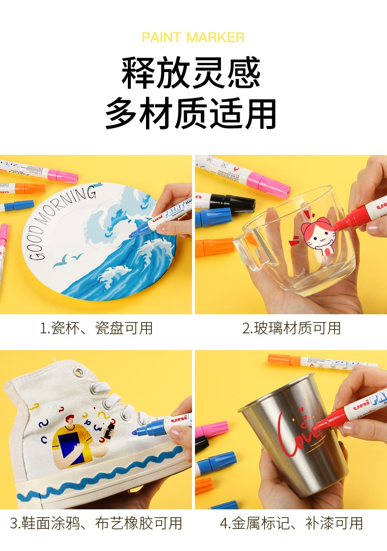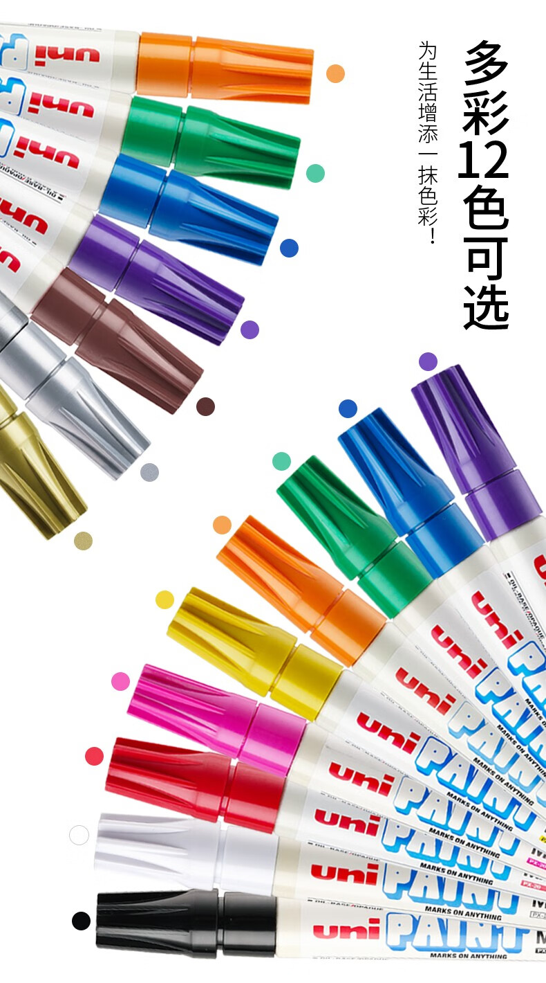 日本uni三菱彩色油漆筆PX-20粗2.2-2.8mm金色婚禮簽名筆馬克筆白色高光筆黑涂鴉記號筆 淺綠